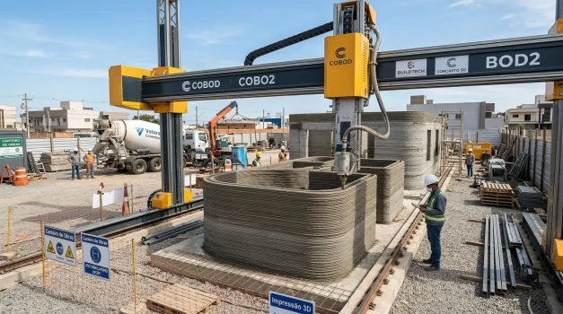 Descubra como a impressão 3D reduz custos, prazos e desperdício na construção civil. Entenda o maquinário, desafios e o futuro automatizado das obras reais.