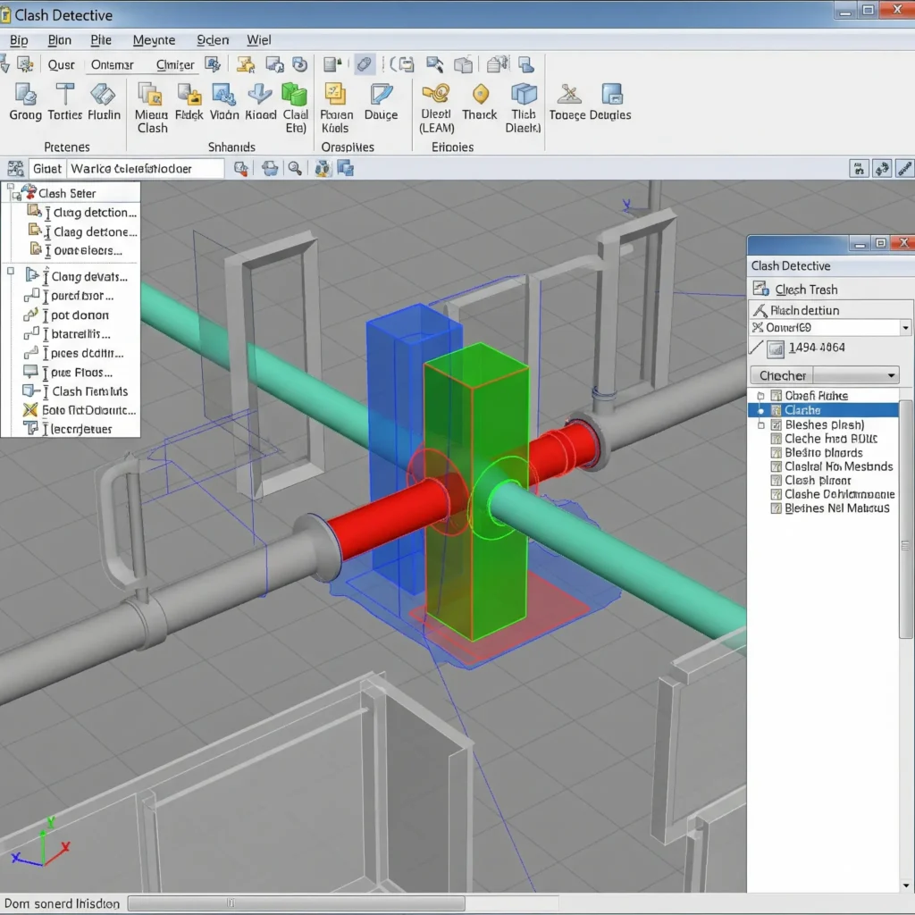 Um dos usos de maior impacto imediato é a detecção de conflitos. Ao sobrepor os modelos de diferentes áreas (arquitetura, estrutura, hidráulica, elétrica) em um Modelo Federado, softwares especializados identificam automaticamente as interferências, como uma viga cruzando uma tubulação. Esses conflitos são registrados em relatórios de Clash Detection, permitindo que as equipes os resolvam ainda na fase de projeto, evitando custos e atrasos na obra.