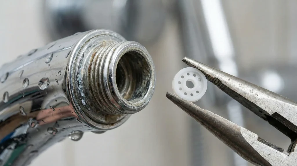 - A Dica de Ouro: Se você mora em casa térrea (baixa pressão), essa peça é sua inimiga. Remova-a com um alicate de bico. O manual do fabricante geralmente indica como fazer isso sem perder a garantia.